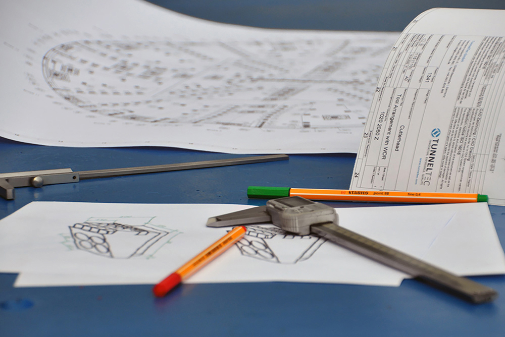 In der Konstruktionsphase legen wir ein besonderes Augenmerk auf die Funktion, Zuverlässigkeit und Lebensdauer unserer Werkzeuge. Dabei erzielte Optimierungen zahlen sich für unsere Kunden in besondere Wirtschaftlichkeit und Effizienz während des Vortriebs aus.